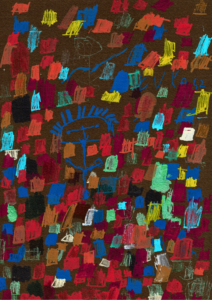 Łukasz chętnie zostawia w swoich pracach ślad siebie — czasem dosłowny, czasem ukryty w decyzjach kolorystycznych i formie. Jest artystą zaangażowanym, wszechstronnym i uważnym. Łukasz jest także harcerzem oraz występuje w Zespole teatralno-muzycznym „A może…” Fundacji „Sprawni Inaczej” — i być może właśnie te doświadczenia budują jego wrażliwość, uważność i otwartość, które odnaleźć można również w jego twórczości.