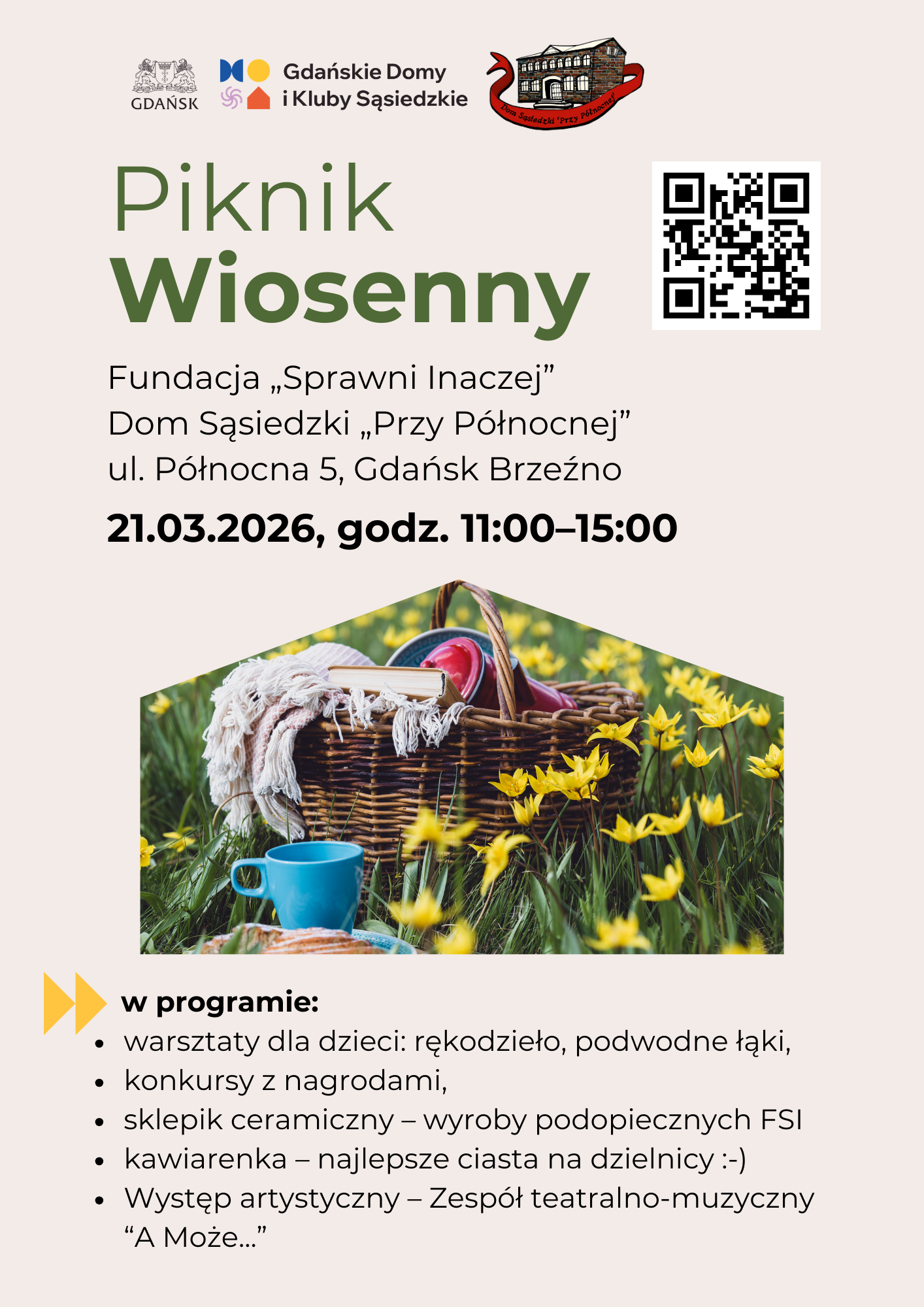 Zima w tym roku była długa i chłodna ❄️🥶… ale wiosna wreszcie nadchodzi! 🌱🌞 Czas wyjść na świeże powietrze, poczuć słońce na twarzy i świętować wiosnę razem z nami! Dołączcie do nas na Pikniku Wiosennym pełnym radości, twórczych warsztatów i wspaniałych spotkań!